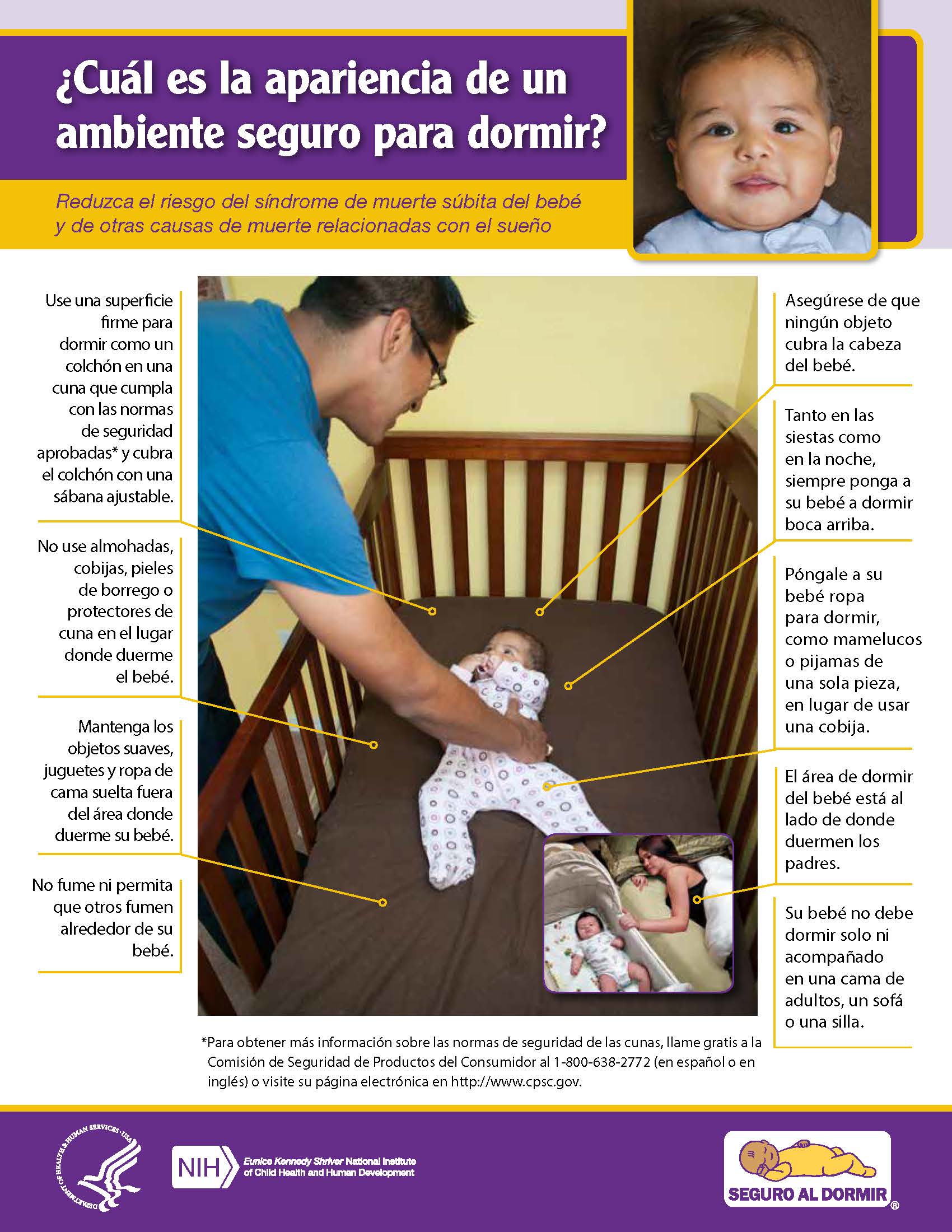 Crib – babies should sleep in a crib or bassinet with a firm, flat surface with no extra items such as crib bumpers, blankets, or toys.